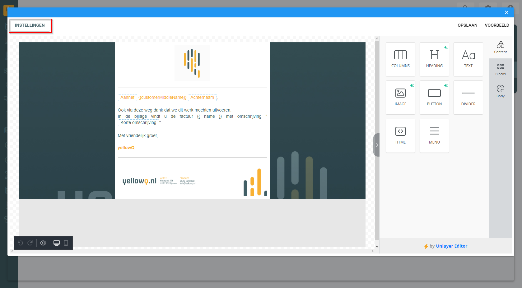 Introductie De e-mail editor is geïntegreerd in yellowQ en maakt het mogelijk om gestandaardiseerde (en geautomatiseerde) e-mails te versturen. Vanuit de admin module kan gebruik gemaakt worden van de e-mail editor waardoor het mogelijk wordt om ...
